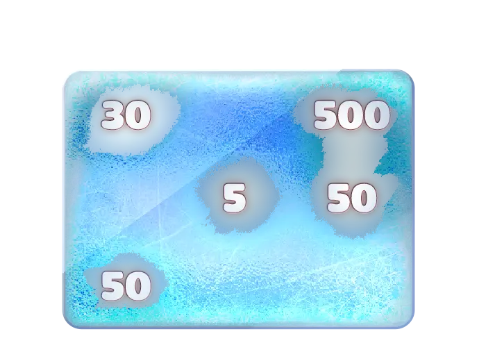 Christmas-themed Ice Scratch pack of 3 games reveals frozen cards with different playing bet values and a chance to win up to x100,000. Rules are simple: players get a card with nine concealed cells to scratch off, uncover hidden values, and aim to match three for that instant win.