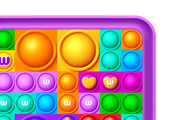 Inspired by Pop It toys, this is a cluster-pay 7x7 slot with refilling reels and Match-3 elements full of features such as Wilds, Re-spin, Big, and Backlit symbols. With a 100-point Progress Bar, the spin’s wins reduce it by 1, triggering a random feature every 25 points. When it reaches zero, three waves of Wilds hit the reels.