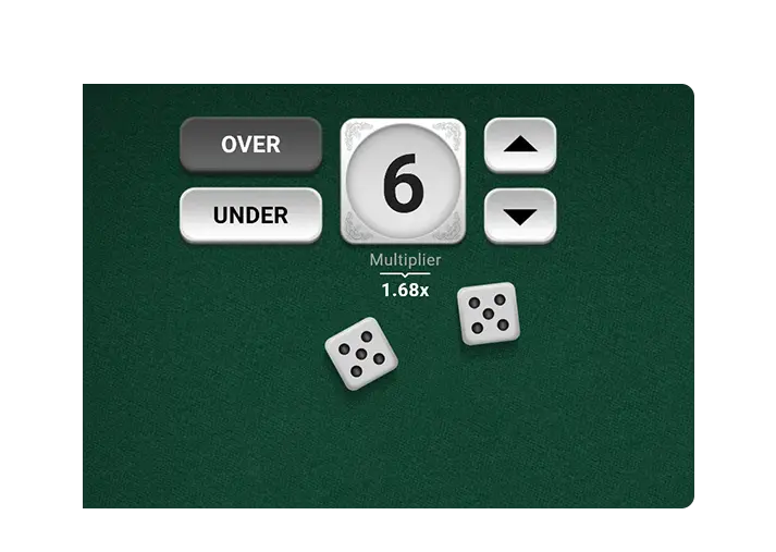 In Rocket Dice, we stay true to the game's simple principles that have been around for ages. The game has a dice cup with two dice, and the goal is to correctly guess whether the roll's outcome will be higher or lower than the chosen number from 2 to 12 with the parameters “over” or “under”. In a nutshell, the players roll dice, then the points on the top faces are added, and the result is summed up. Easy!