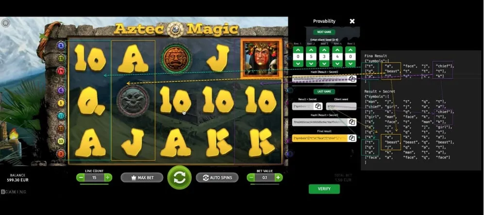 BGaming is the first major iGaming provider to introduce the “provable fairness” feature. Provably fair in online gambling can be described as an algorithm that is used to analyze and verify fair play.